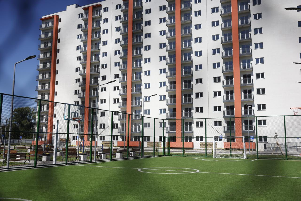საცხოვრებელი კომპლექსის ეზოში სტადიონი, ბავშვთა გასართობი მოედანი და სავარჯიშო სივრცე მოეწყო.